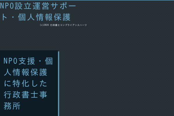「市民活動団体の運営・個人情報保護・広報を、多職種連携で支える専門NPO」です。