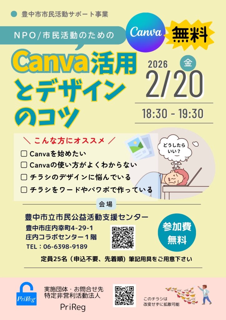 市民活動の広報に使用するチラシ・ポスター・HPをCanvaで美しく作るコツを学ぶ。